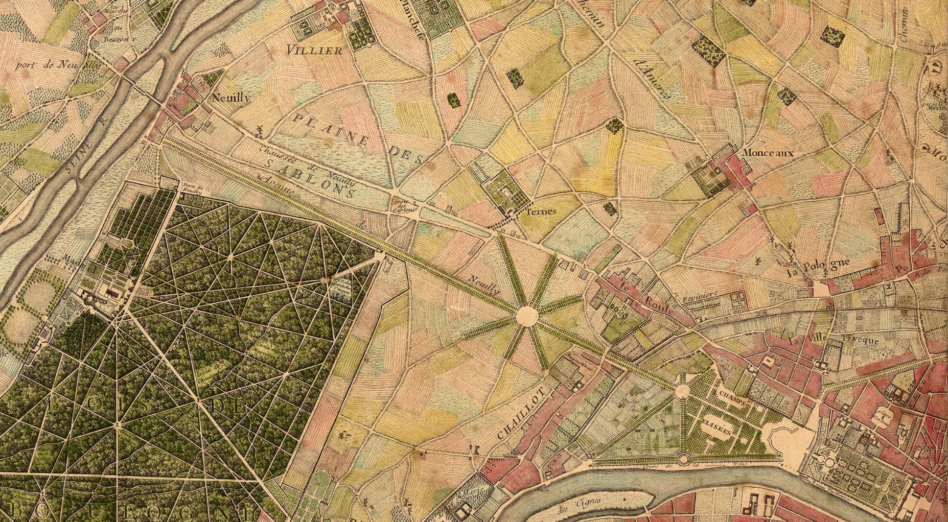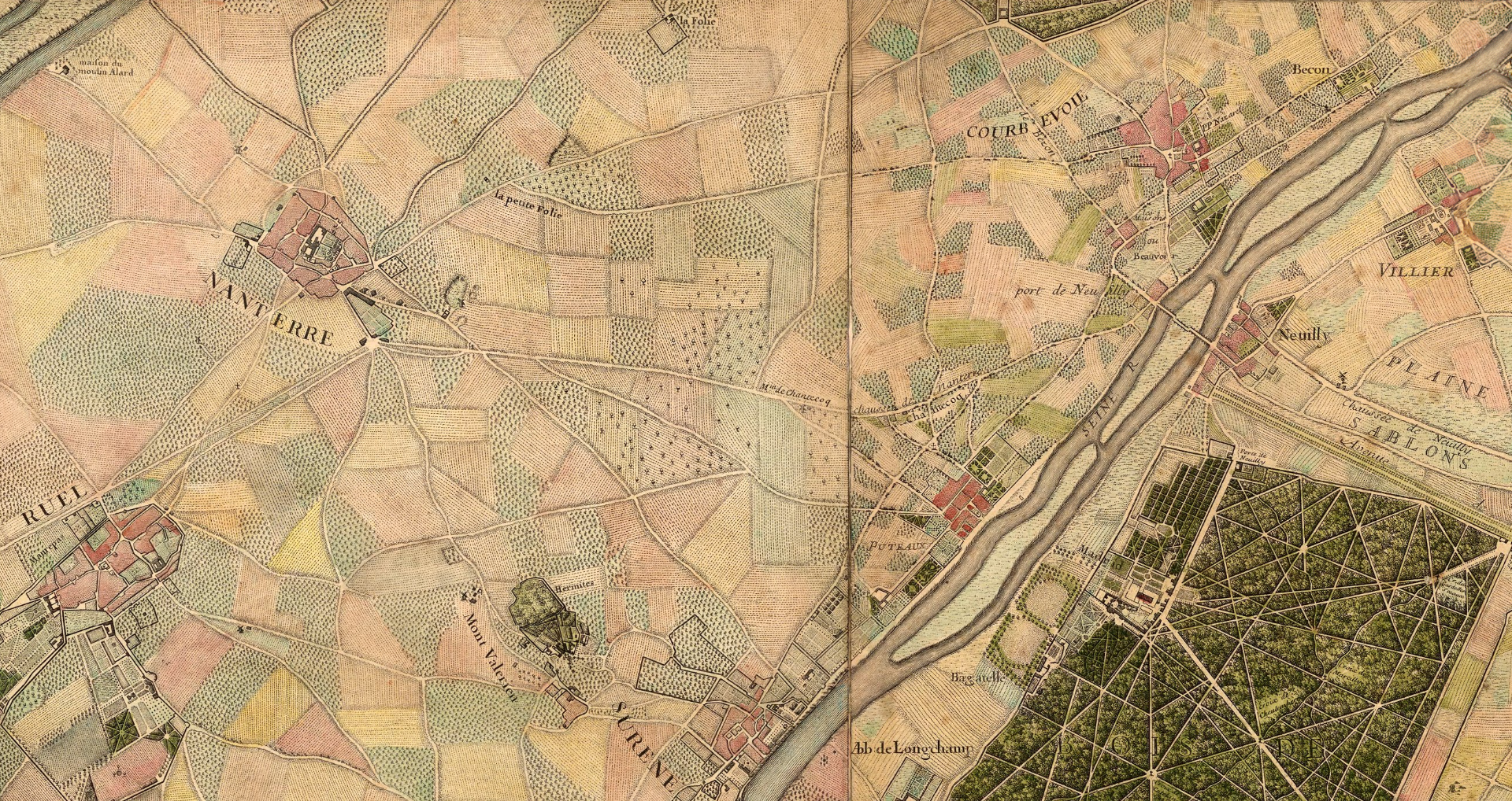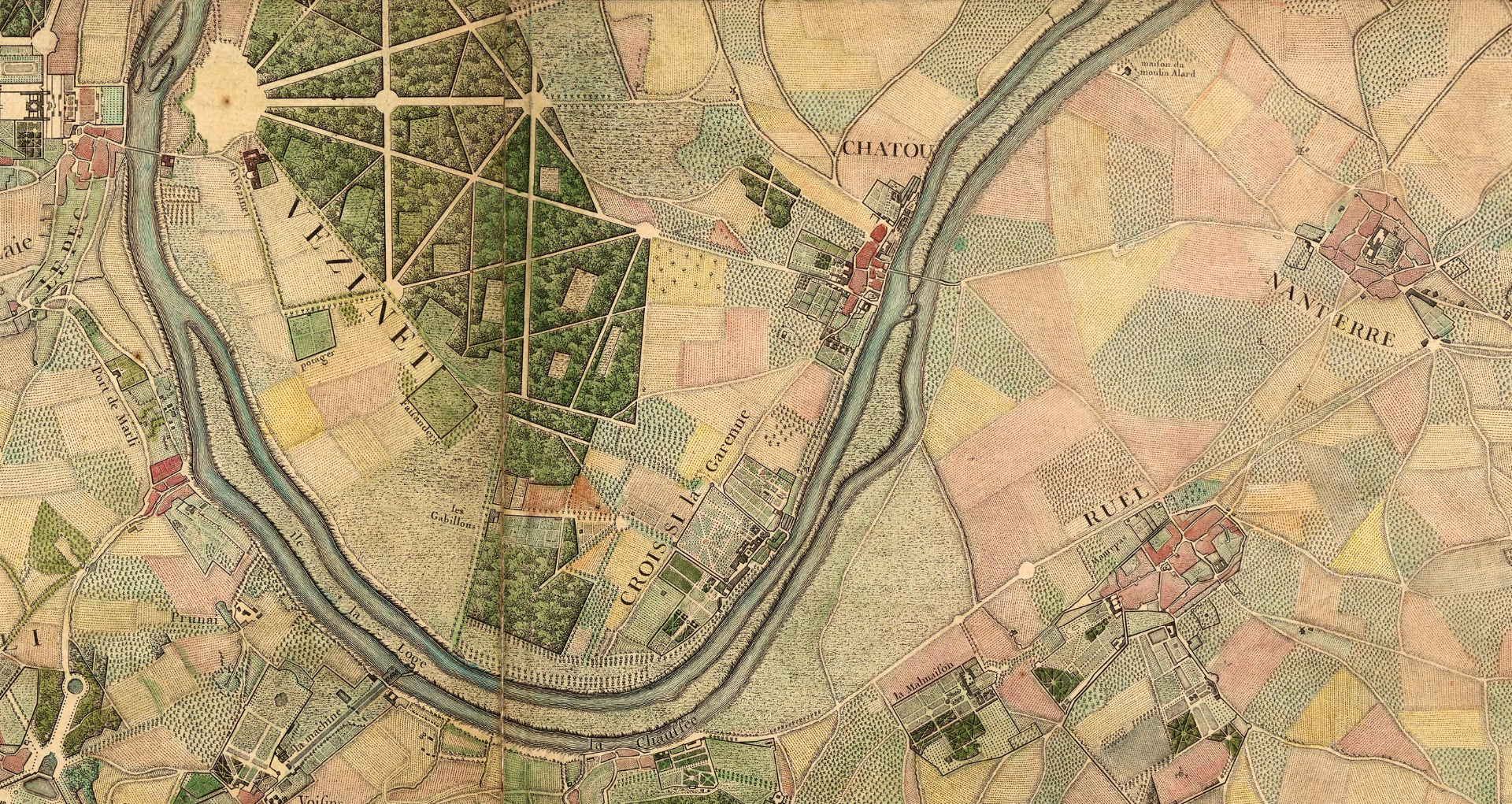 "Environs de Paris," created in 1740 by L’Abbe Jean Delagrive, Claude Charles Riolet, and P.F. Tardieu.